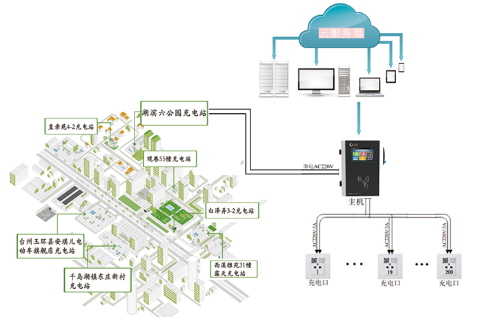 云智能充電系統以電瓶車安全充電為基礎,基于GPRS、Ethernet構建互聯網+物聯網+人聯網的模式, 通過自主研發(fā)智能充電樁、主機、通訊設備、服務端和客戶端應用系統,為降低電瓶車充電火災隱患,實現安全充電的終極目標提供技術手段及相關服務。